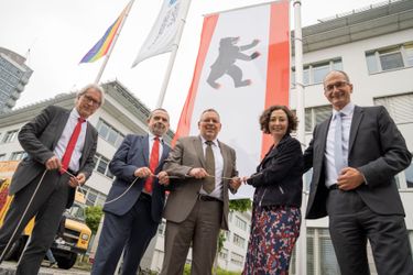- Gemeinsames Hissen der Berlin-Flagge symbolisiert Rückkehr zum Land Berlin